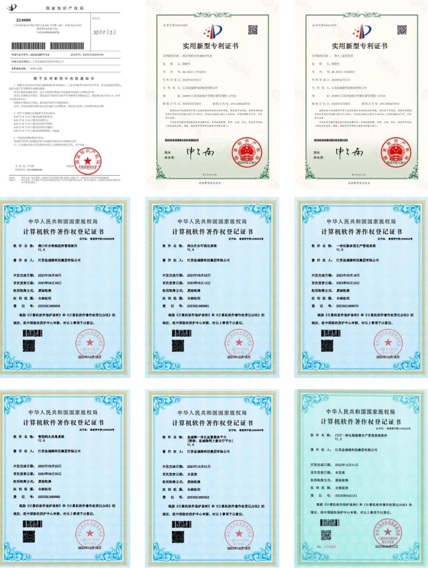 科技集團(tuán)作為鹽城港高質(zhì)量發(fā)展的先行軍,未來(lái)躋身世界一流港口的急先鋒,錨定“國(guó)家高新技術(shù)企業(yè)”目標(biāo),加快重點(diǎn)領(lǐng)域研究,推進(jìn)技術(shù)攻堅(jiān)突破,在知識(shí)產(chǎn)權(quán)保護(hù)和軟著申報(bào)取得進(jìn)展。年內(nèi)共獲得水上監(jiān)控系統(tǒng)、抑塵裝置、港區(qū)智能化環(huán)境維護(hù)系統(tǒng)3項(xiàng)實(shí)用新型專(zhuān)利證書(shū);智能碼頭信息系統(tǒng)、一體化散雜貨生產(chǎn)管理系統(tǒng)、港口作業(yè)智能監(jiān)控管理軟件、碼頭作業(yè)可視化系統(tǒng)、鹽城港一體化運(yùn)營(yíng)服務(wù)平臺(tái)、CYCP一體化集裝箱生產(chǎn)管理系統(tǒng)6項(xiàng)計(jì)算機(jī)軟件著作權(quán)登記證書(shū)。